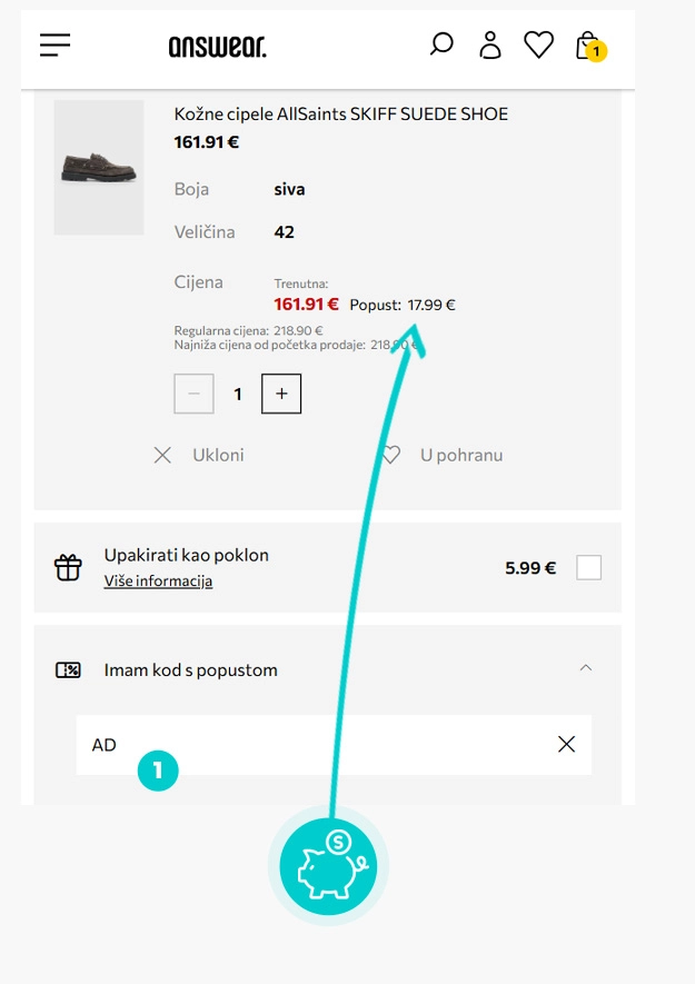 Ne znate kako točno funkcioniraju kodovi za popust na Answear.hr? Nudimo vam postupak kako možete brzo i jednostavno primijeniti kodove za popust prilikom kupnje: