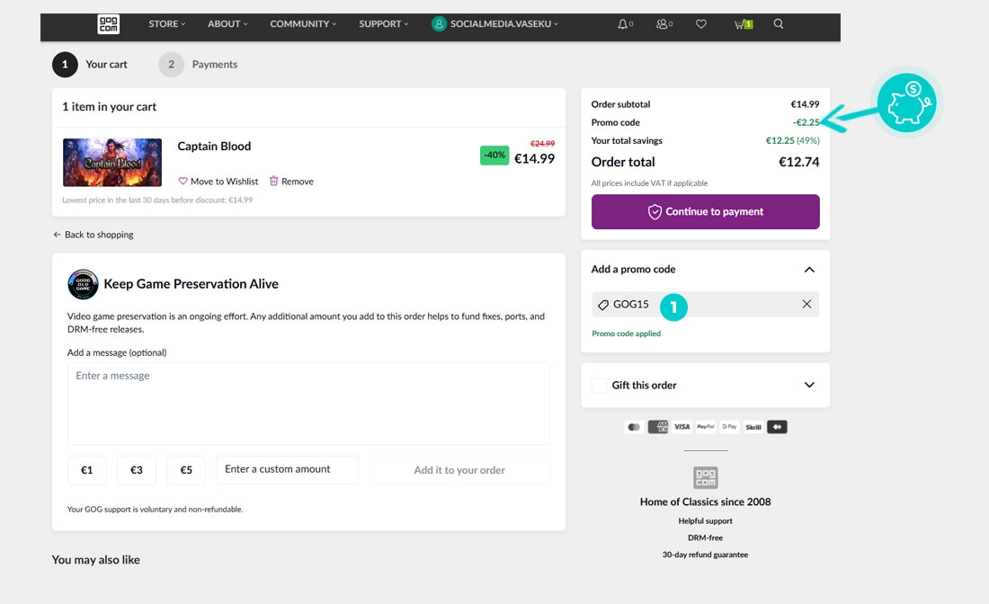 Ne znate kako točno funkcioniraju kodovi za popust na Gog.com? Nudimo vam postupak kako možete brzo i jednostavno primijeniti kodove za popust prilikom kupnje: