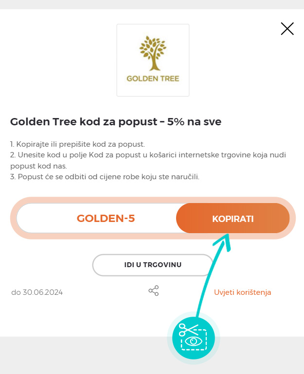 Kopirajte prikazani kod i kliknite gumb "Idi u trgovinu". Bit ćete automatski preusmjereni na GoldenTree.hr.