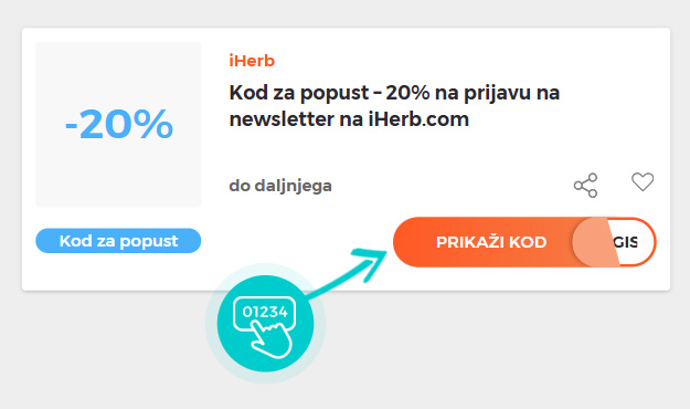 U eshopu iHerb naći ćete popuste – 20% na prijavu na newsletter na novu kupnju. Kod dobivate prijavom na e-mail. Popust ostvarujete kada uneste kod za popust u košaricu Iskoristite iHerb kod za popust i kupujte jeftinije.