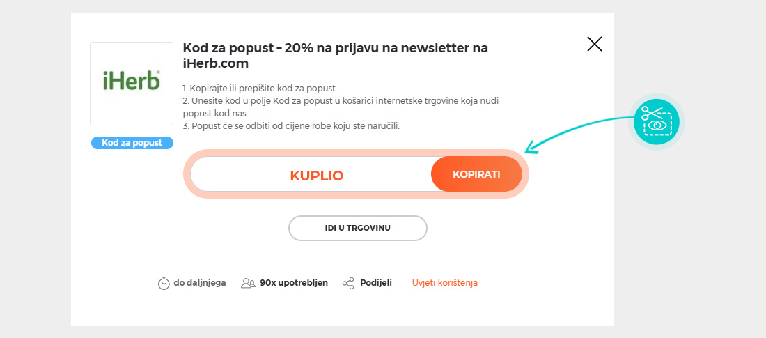 Kopirajte prikazani kod ili ga zapišite, zatim kliknite na "Idi u trgovinu". Bit ćete preusmjereni izravno na iHerb službenu stranicu.