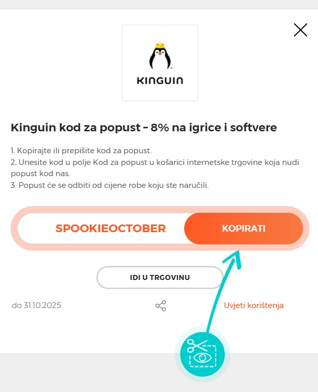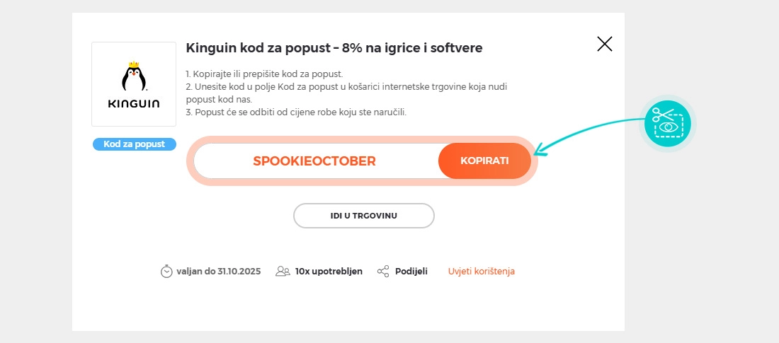 Kopirajte ili zapišite kod za popust i kliknite gumb "Idi u trgovinu". Zatim ćete biti preusmjereni izravno na Kinguin.net e-trgovinu.