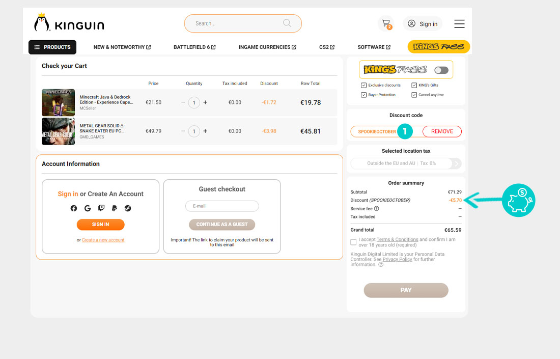 Ne znate kako točno funkcioniraju kodovi za popust na Kinguin.net? Nudimo vam postupak kako možete brzo i jednostavno primijeniti kodove za popust prilikom kupnje: