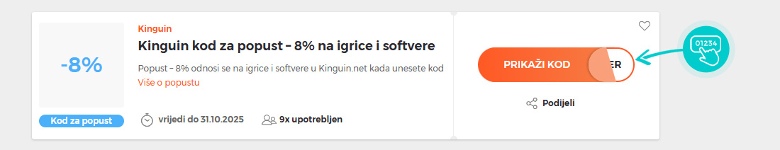 Postoji nekoliko načina kako pronaći Kinguin kodove za popust. Jedan od njih je izravno pregledavanje web stranice eshopa, dok na našoj stranici Kuplio.hr uvijek možete pronaći najnovije kodove i brojne druge atraktivne ponude.