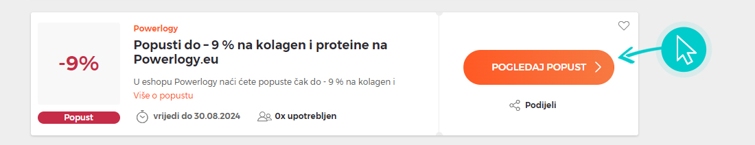 Odaberite određeni Powerlogy popust na našoj web stranici i kliknite gumb "Prikaži popust". Automatski ćete biti preusmjereni izravno na promotivnu ponudu u Powerlogy.eu online trgovini, gdje možete kupiti proizvod s popustom.