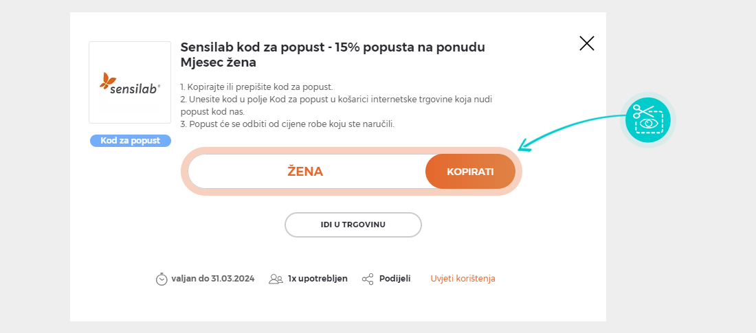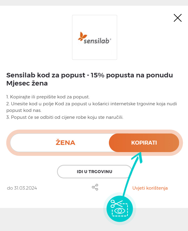 Kopirajte ili zapišite kod za popust i kliknite gumb "Idi u trgovinu". Zatim ćete biti preusmjereni izravno na Sensilab.hr e-trgovinu.
