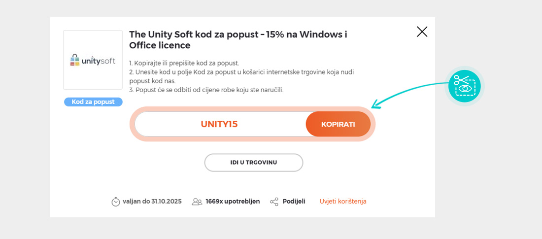 Kopirajte ili zapišite kod za popust i kliknite gumb "Idi u trgovinu". Zatim ćete biti preusmjereni izravno na Theunitysoft.com e-trgovinu.