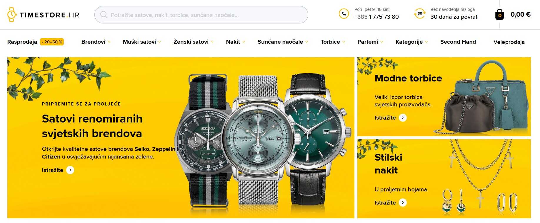 Timestore.hr dio je renomirane internetske trgovine koja je osnovana 2011. godine i specijalizirana za prodaju luksuznih ručnih satova i modnih dodataka za žene i muškarce.