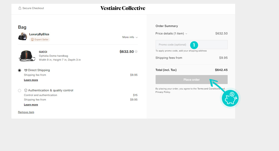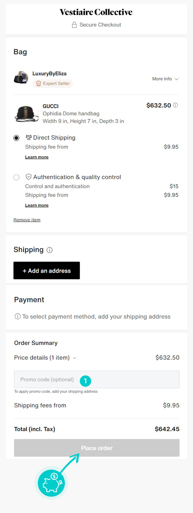U e-trgovini Vestiairecollective.com odaberite proizvod koji vas zanima, pritisnite gumb "Dodaj u košaricu" i proizvod će automatski biti dodan u košaricu. Izravno u košarici pronaći ćete polje "Unesite kod za popust" u odjeljku "Sažetak" s desne strane. Ovdje zalijepite kopirani kod za popust ili ga unesite ručno i potvrdite tipkom "Primijeni".