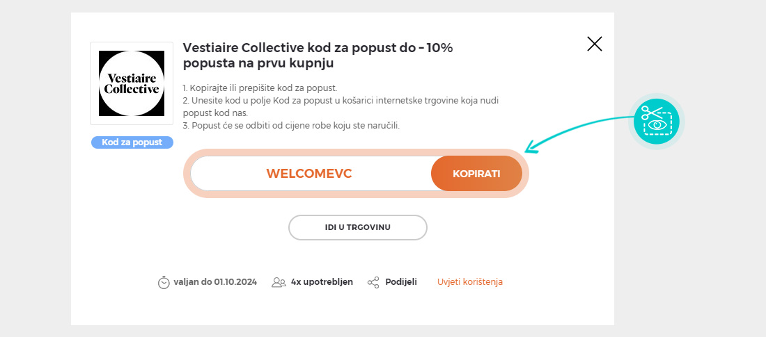 Kopirajte ili zapišite kod za popust i kliknite gumb "Idi u trgovinu". Zatim ćete biti preusmjereni izravno na Vestiairecollective.com e-trgovinu.